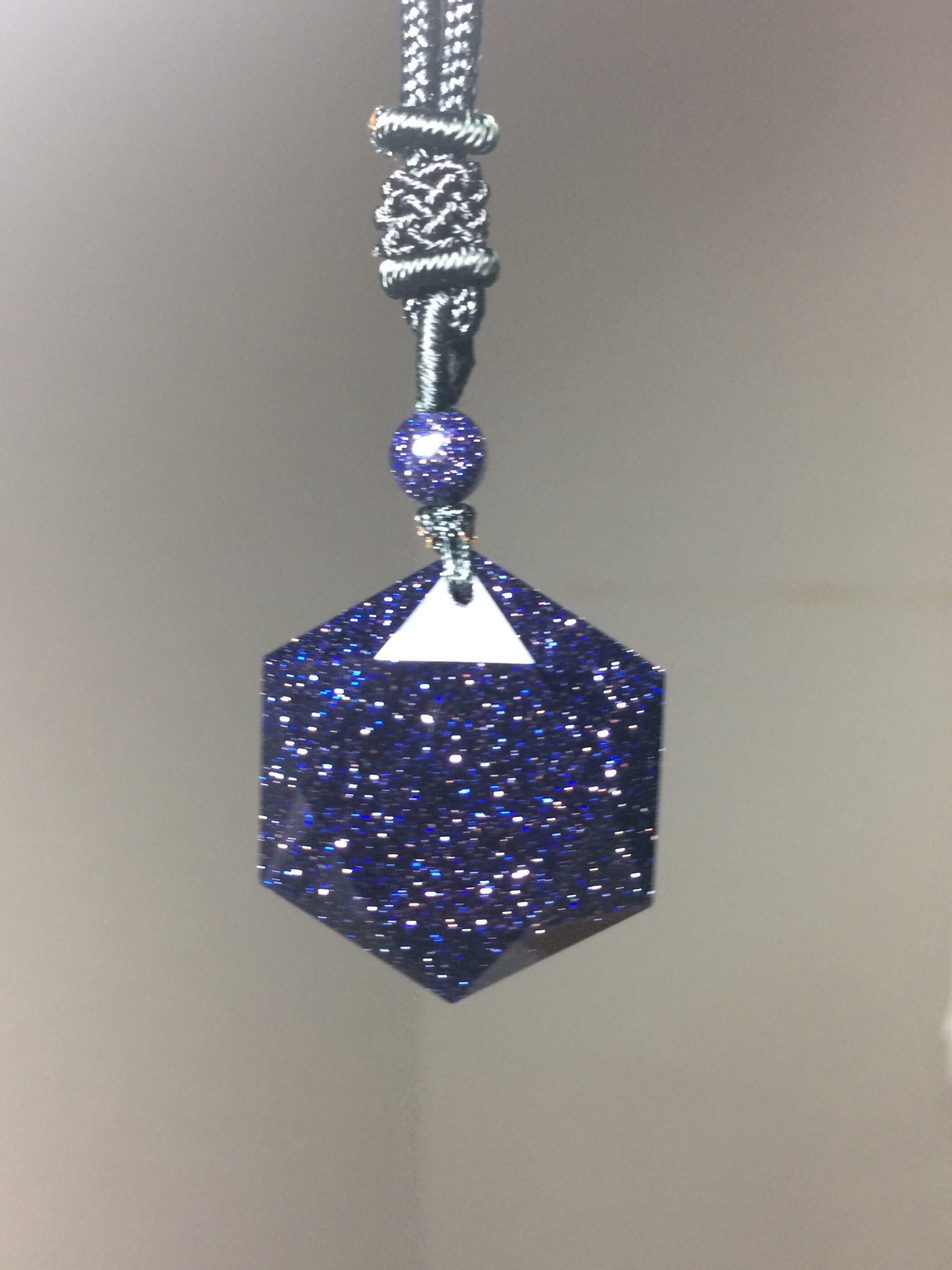 ブルーゴールドストーン(紫金石)別名ブルーサンドストーン。この石には、まるで夜空に煌く星空のような輝きが見られます。ブルーゴールドストーン(紫金石)には、出会い、チャンスを引き寄せるという意味があります。前向きな人生を目指したい人には、きっと良いパワーを与えてくれるでしょう。新しい環境が始まる人にピッタリです。明るい光のエネルギーに満ち「マイナス」を「プラス」へ変化させてくれます。「不安」「恐怖」「悲しみ」「怒り」などのネガティブな雑念を、綺麗にリセットしてくれます。またブルーゴールドストーン(紫金石)は、財運アップの効果があるパワーストーンで、持ち主のビジネスを成功に導く力が宿っています。資産の拡大を目指す時にもオススメです。そしてデザインは六芒星です。この紋章パワーが、上記の効果を更にパワーアップしてくれます。六芒星には、パワーの解放、神聖と自然の神秘、秩序や生成、調和等、古来より語り尽くせないくらいの効能が宿っているとされています。身につけたときから、古代紋章のパワーを全身に宿すことができます。このパワーストーンで新しい運勢を引き寄せてみませんか。石のサイズは26mm×28mm。ストラップは付属しません。